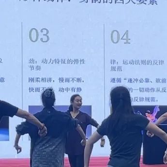 北京舞蹈学院中国古典舞系副教授、硕士研究生导师闫妍从中国古典舞身韵的历史发展讲起,深入解析了课程的核心逻辑和审美特点,并通过现场互动让抽象理论变得生动可感。通过“边讲边示范、边学边练”的方式,让学员们更加深刻理解了身韵教学的深层内涵。